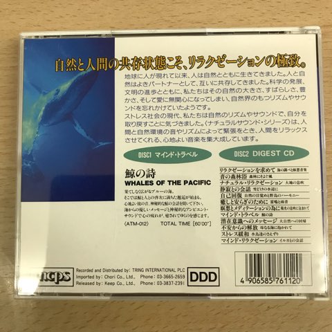 ニューエイジと言えばイルカですがこちらは〈マインドリラクゼーション・シリーズ〉からのクジラもの。こちら2枚組で1枚目にクジラの鳴き声も入った1曲60分のディープ・ニューエイジ「鯨の詩」を収録。そして2枚目がこの〈マインドリラクゼーション・シリーズ〉からリリースされた12枚のアルバムからのダイジェスト盤なのですが、こちらが1曲4分から7分にまとめられていてちょうど良い長さになっており、1枚のアンビエント/ニューエイジ作品として聴くことができます。中でも「静寂との会話 雪どけの水辺に」はSteve Reich好きにもオススメの鬼クールな極上ミニマル・ニューエイジ。