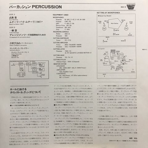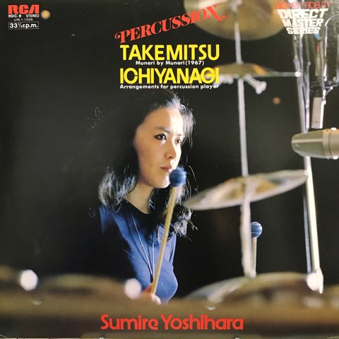 世界で活躍する名打楽器奏者、吉原すみれが武満徹の「Munari by Munari」と一柳慧の「Arrangements for Percussion Player」演奏した78年作。日本的間の美学が感じられる静謐な武満のA面、打楽器の打点のズレに脳みそがバグりそうになる一柳のB面と両面とも素晴らしい打楽器音響作品。