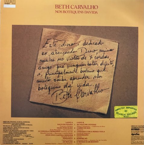 サンバを代表するブラジルの大歌手Beth Carvalhoの77年作。同じくサンバの代名詞的存在ででブラジル音楽重要人物の一人Cartolaの作品と同様に、ポジティブに力強くグルーヴしていくリズムや全体に満ち溢れる祝祭感のなかに哀愁〜サウダージ感が同居しているのが本当にたまりません!前作『Mundo Melhor すばらしき世界』と並ぶサンバ傑作。