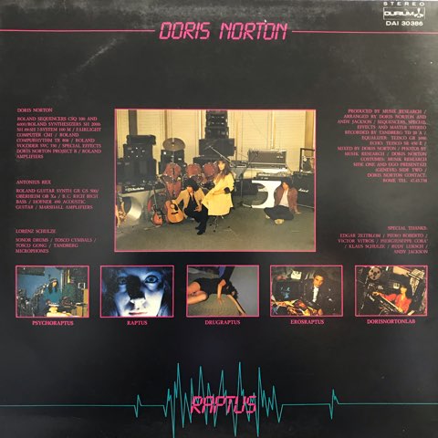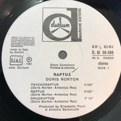 近年ではコズミック/ディスコからの再評価も著しいイタリアの電子音楽家Doris Nortonの81年1st。ヘッドフォンで爆音で聴くと過剰な情報量のシンセサイザーによって脳みそがバグりそうになってくる感覚が味わえます!ジャケットのDoris Nortonのマッドな瞳に相応しい激ヤバ盤!