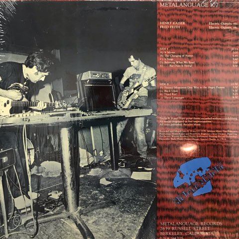 Henry Cow/Art Bears/Massacre/Skeleton Crewなど様々なバンドでの活動で知られるイギリスを代表するエクスペリメンタル・ギタリストFred Frithとアメリカの前衛ギタリストで民族音楽学者でもあるHenry Kaiserによる79年作。Henry KaiserとLarry Ochsの共同レーベルMetalanguage Recordsからのリリース。デュオによるフリー・インプロヴィゼーションですがこの二人ならではのアヴァンギャルドでユニークな音色や展開が面白すぎる!最高です。