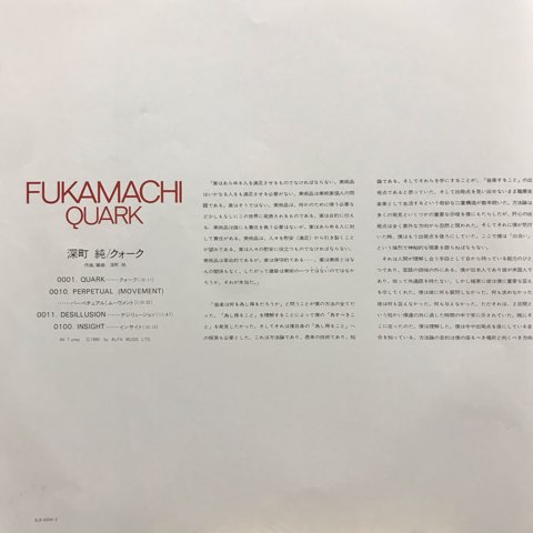 和ジャズ/フュージョンの先駆的鍵盤奏者、深町純が多重録音で制作した80年のアルバム。シンセサがうねりまくりピュンピュン飛び跳ねるパラノイアックなエクスペリメンタル・コズミック・シンセ作品。脳内宇宙旅行に行けるヘッドフォン推奨!