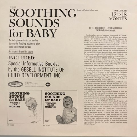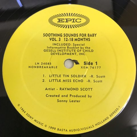 1930年代から音楽活動を開始しスウィング・ジャズはもちろんラジオの音楽プロデューサー仕事やCMジングルの制作も手掛けさらには電子音楽家の先駆けとしても知られる鍵盤奏者Raymond Scott。こちらがその電子音楽家サイドの代表作ともいえる64年にリリースされた「赤ちゃんの為の心安らぐ音楽」シリーズの1歳から一歳半の幼児に向けた第三弾。夢の中で廻るメリーゴーランドのような「Little Miss Echo」は最高の電子音ミニマル!
