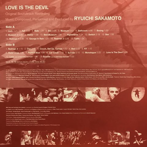 坂本龍一が音楽を担当した98年公開のBBC共同製作による映画『愛の悪魔/フランシス・ベイコンの歪んだ肖像』のサウンド・トラック。監督からの音楽に対する要望は最小限だったらしく自由に制作したという、坂本龍一自身にも転機となった後期作風への起点ともいえるアルバム。サウンドのテクスチャーを重視した先鋭的なアンビエント〜ノイズ〜エレクトロニクス作品として超一級品!