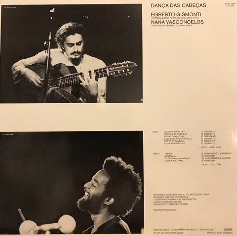 ブラジルの鬼才Egberto GismontiのECMからは初リリースとなる邦題『輝く水』で知られる77年作。盟友Nana Vasconcelosとのデュオ・アルバム。ギター、フルート、ピアノ、パーカッション、ビリンバウ、ヴォイスを駆使してブラジル音楽や土着の民族音楽、前衛音楽にクラシックなどが不可分に混ざり合った野性と洗練が同居している独自の音世界を創り上げています。名エンジニアJan Erik Kongshaugの空気まで捉えたような録音も秀逸。