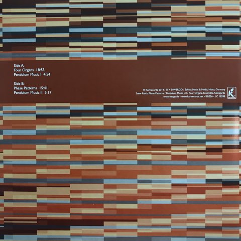 ミニマル・ミュージック最重要人物の一人Steve Reichが1968から1970に作曲した3つの初期作品「Four Organs」「Phase Patterns」「Pendulum Music」をドイツ・ライプツィヒの音楽グループEnsemble Avantgardeが取り上げた2014年作。シンプルな編成ながら変化しつつ繰り返していくことによって陶酔感をもたらす初期Reichの魅力を引き出した名演!Steve Reich好きはマスト!2022年にリプレスされてますがこちらは2014年のオリジナル。