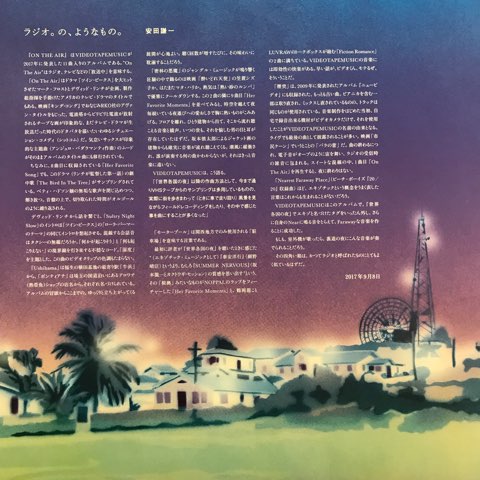 古今東西さまざまなビデオテープをサンプリングして映像や音楽を創り出すことで知られるミュージシャン、映像ディレクターVIDEOTAPEMUSICがカクバリズムからリリースした2017年作。作者自身の過去のビデオや1930年代のスイング・ジャズから2017年の夏の夜の雨音まで時代や場所を超えた素材を用いて制作された最高にメロウでエキゾチックなアルバム。名作!ジャケット・イラストは坂本慎太郎、ライナーは安田謙一。
