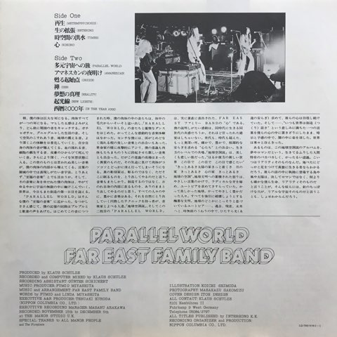宮下富実夫、伊藤詳、喜多郎、深草アキなど後のニューエイジ重要人物を擁するジャパニーズ・サイケデリック/プログレッシブ・ロック・バンドFar East Family BandがKlaus Schulzeのプロデュースで制作した76年作。Julian Cope著『ジャップ・ロック・サンプラー』でも上位に取り上げられたスぺーシーでサイケデリックな名盤!