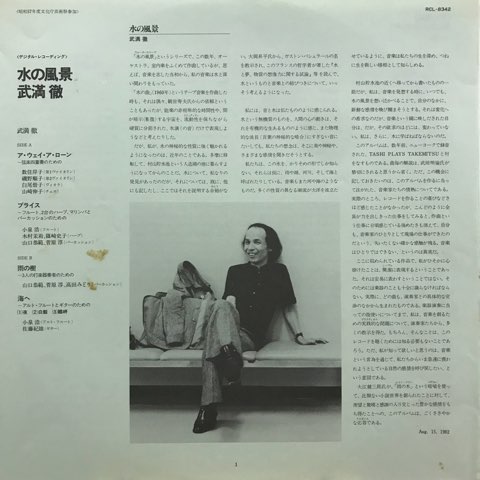 日本が誇る現代音楽作曲家、武満徹が自身にとって重要なテーマである「水」に関する作品をまとめた82年作。現在世界的に再評価されているパーカッショニスト〜アンビエント/ミニマル・ミュージックの作曲家でムクワジュ・アンサンブルのメンバーでもある高田みどりが参加した「3人の打楽器奏者のための「雨の樹」」はその音数の少なさや残響の美しさなど武満流アンビエント・ミュージックとして聴ける屈指の名曲。