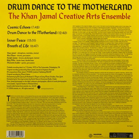 オリジナルは1973年に300枚限定でリリースされた、アメリカのジャズ・ビブラフォン/マリンバ奏者Khan JamalによるアンサンブルKhan Jamal Creative Art Ensembleの激レア自主盤の2009年EM Records再発盤。内容は他では聴けない衝撃のフリー・ジャズ・ダブ作品!EMの再発で初めて聴いたときは好きな要素が入りすぎてて全身の細胞が歓喜に沸きました笑。