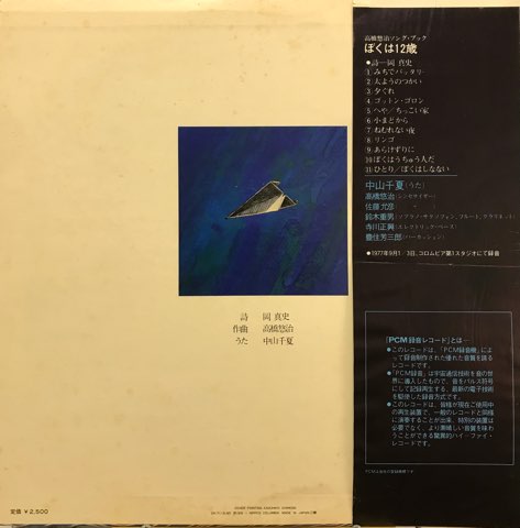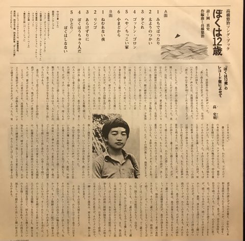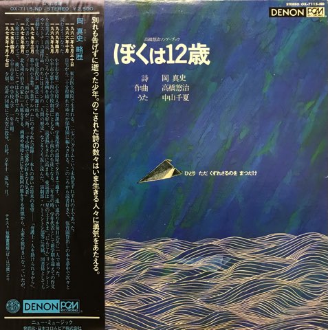 12歳で自死した在日朝鮮人である岡真史の詩をもとに高橋悠治が作曲し中山千夏が歌った作品。当時の中山の夫である佐藤允彦が高橋とともにシンセサイザー、豊住芳三郎がパーカッション、鈴木重男がリード、寺川正興がベースで参加。岡真史の切実な詩を歌う存在感のある中山千夏のヴォーカルも素晴らしいですが、特に2台のシンセとベースが印象的なオリエンタルかつストレンジでプログレッシヴなアレンジがヤバすぎる!
