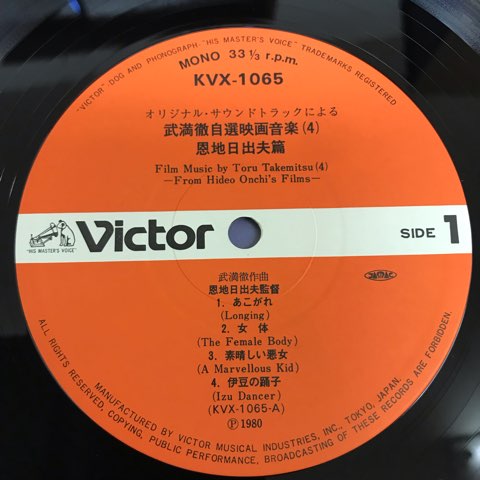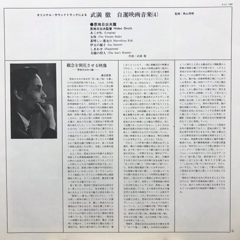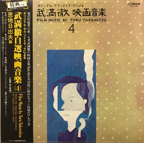 前衛だけにとどまらずポップスなどにも素晴らしい名曲を残している日本が誇る音楽家、武満徹が手掛けた映画音楽を10枚にまとめたシリーズ「オリジナル・サウンドトラックによる武満徹自選映画音楽」の第4弾。今作では恩地日出夫監督作品を取り上げています。秋山邦晴の解説に「恩地作品での武満の音楽は、つねに甘美であり、リリカルな旋律を特色としている」とあるようにメロディ重視の楽曲が並びますがそんな中でも響きの面白さはしっかりあるところが武満ならでは!