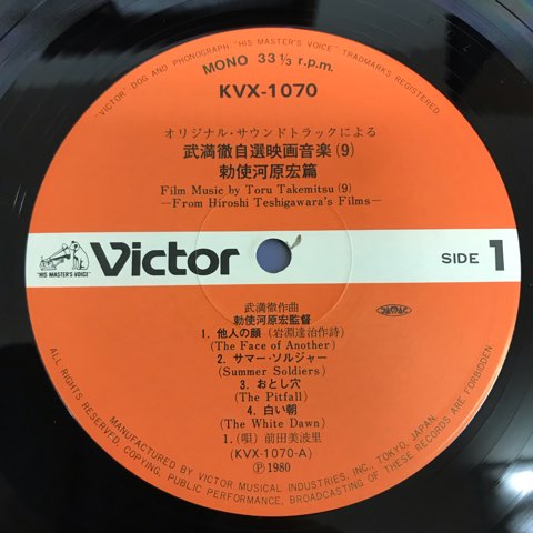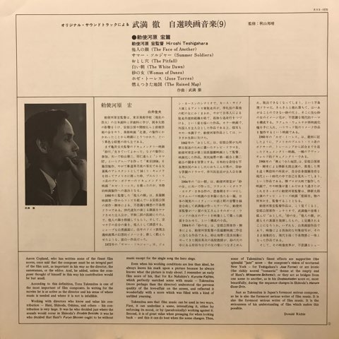 前衛だけにとどまらずポップスなどにも素晴らしい名曲を残している日本が誇る音楽家、武満徹が手掛けた映画音楽を10枚にまとめたシリーズ「オリジナル・サウンドトラックによる武満徹自選映画音楽」の第9弾で、全曲を奇才映画音楽監督・勅使河原宏の作品から収録。このシリーズの中でも今作はプリペアド・ピアノを駆使した「おとし穴」、弦楽器を電子変調した「砂の女」、ミュージック・コンクレート〜テープ音楽「燃えつきた地図」といった武満独自の前衛性が発揮された屈指の名曲を収めており、映画音楽に限らず名盤といえる内容になっています。オルゴールのようなエレピが聴ける「サマー・ソルジャー」も名曲!