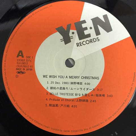 細野晴臣、大貫妙子、伊藤銀次、ピエール・バルー、鈴木慶一率いるムーンライダーズ等が参加したオリジナル・クリスマス・ソング・アルバム。翌年にカセット作品『花と水』をリリースしアンビエント/ニューエイジ期に入っていくその先駆けのような細野晴臣「25 Dec.1983」、細野さんによるミニマルなアレンジ・演奏が光る越美晴「Belle Tristesse 妙なる悲しみ」、同じく細野さんの弾くProphet-5、DX7が極上の音色で響く「祈り」など、ニューエイジ/アンビエント再評価の今聴きたい作品です。