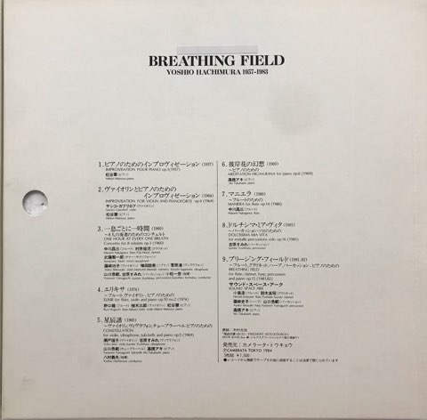 現代音楽家、八村義夫が1985年に亡くなる前年にリリースされた、1957年から1983年までのあいだに作曲した9作品を収録した集大成的3枚組ボックス・セット。高橋アキや吉原すみれ、山口恭範、篠崎功子などが参加。フルート、クラリネット、ハープ、パーカッション、ピアノからなるSound Space Arkの各奏者の演奏位置にもこだわり音響空間を立体化させたという、スピーカーの真ん中で爆音で聴くと素晴らしい音響体験ができる「Breathing Field」や打楽器ソロによるきめ細やかな金属音が空間を埋め尽くす凄まじい打楽器音響作品「Dolcissima Mia Vita」など。
