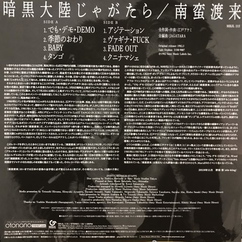 江戸アケミの30〜40年後の日本社会の状況まで射程範囲に捉えた歌詞によってさらに唯一無二性を高めているじゃがたらの82年1stアルバム。ポスト・パンク、ファンク、アフロビート、レゲエなどを吸収昇華し独自のグルーヴを創り上げた日本音楽史上に残るマスターピース。