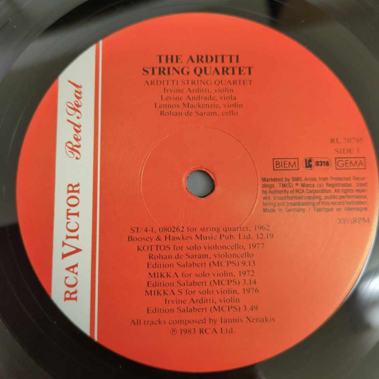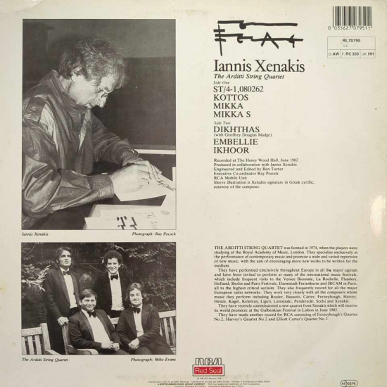 フランスが誇る現代音楽作曲家で建築家でもあるIannis Xenakisの室内楽曲をイギリスのThe Arditti String Quartetが取り上げた83年作。数学理論を導入しコンピュータで演算を行い作曲した1曲目「ST/4」から強烈!全編に渡ってヴァイオリン系弦楽器によるXenakisでしかあり得ない凄まじい音響世界を描いた傑作。