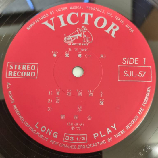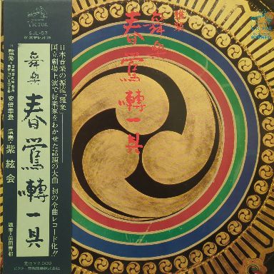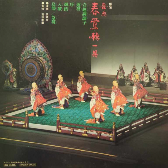 古代以来の宮廷雅楽師、安倍家の二十八代目である安倍季巌監修のもと、宮内庁式部職楽部のベストメンバーにより構成された雅楽紫絃会によって舞楽の中で大曲として特別に尊重されているという「春鶯囀一具」を録音した73年作。極彩色の笙のドローンが吹き荒れ太鼓が地鳴りのように轟く、個人的に聴いてきた雅楽のレコードの中でもトップクラスに強烈な演奏!ジャケットもインパクト大!!