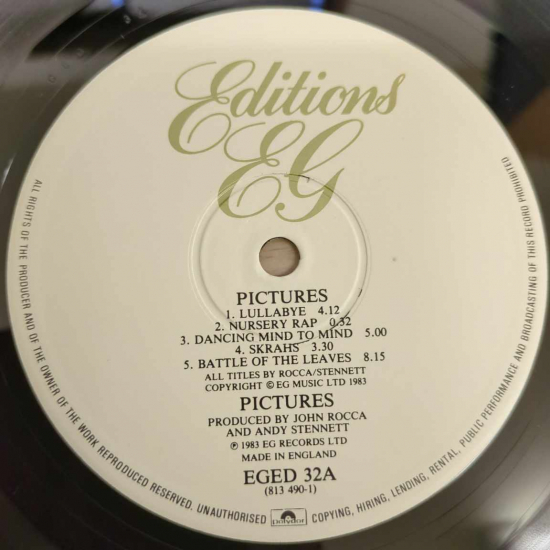 UKフュージョン/ジャズ・ファンク・バンドFreeezのメンバーだったAndy StennetとJohn Rocca によるユニットPicturesの83年唯一作。Freeezの音楽性からは想像できない上質のエクスペリメンタル〜アンビエント作品。Brian Enoが絡んでるんじゃないかと思わせるほどの内容の良さです。ノイズもたまらない歌ものアンビエント「Loneliness」ほか。