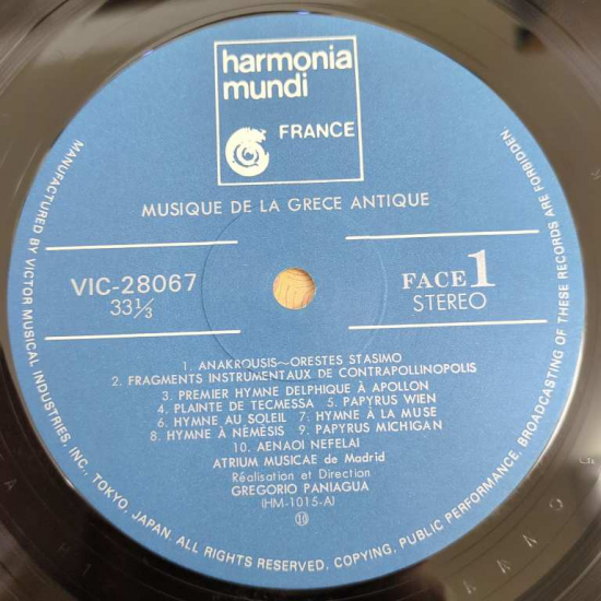スペインの古楽研究家・古楽演奏家であり、現在再評価著しい80〜90年代のスペイン・ニューエイジ・シーンの重要人物、Luis Paniaguaの兄弟でもあり、そのLuisも参加している古楽アンサンブル楽団「アトリウム・ムジケー古楽合奏団」を率いるスペイン・コンテンポラリー・シーンの親玉、Gregorio Paniaguaの代表作の一つ「古代ギリシャの音楽」。針を落とした瞬間に異常な音の良さで鳴り響く強烈な不協和音の塊から始まる、古代ギリシャで演奏されていたであろう音楽を楽器も含めて再現したというGregorio Paniaguaの妄想的前衛性が爆発した傑作。