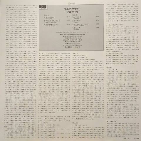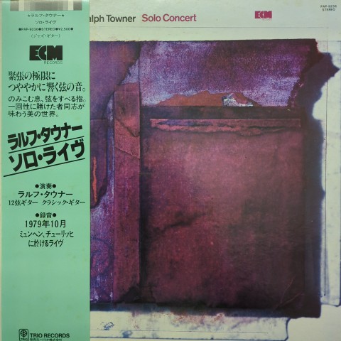 エスノ・ジャズ・グループOregonの活動でも知られるギタリストRalph TownerがECMからリリースした80年作。12弦ギターとクラシック・ギターのみを利用したソロ・コンサートのライブ・レコーディング音源ですが、アルペジオやコードワーク、ハーモニクスを駆使したとても1本のギターから出ているとは思えない泉から湧き出るような豊穣なサウンドが全編に渡って聴けます。この作品の魅力をさらに高めている、リヴァーブの効いたギターが空間に広がっていくECMならではの録音も秀逸。