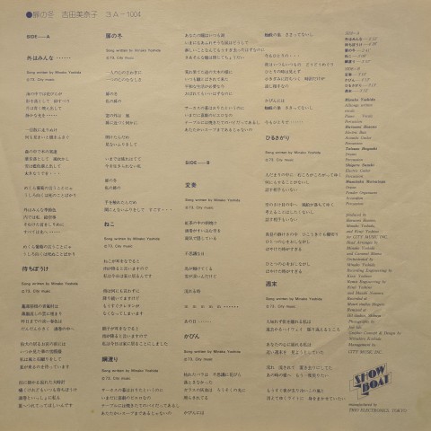 細野晴臣、松任谷正隆、鈴木茂、林立夫のキャラメル・ママがバックに参加した吉田美奈子20歳の時の73年1stアルバム。吉田美奈子のソングライティングやLaura Nyroばりのヴォーカル、細野さんの極太で自由なベースはじめレイドバックしたキャラメル・ママの演奏、吉野金次による最高に気持ちの良い録音と全部が完璧!爆音で!!