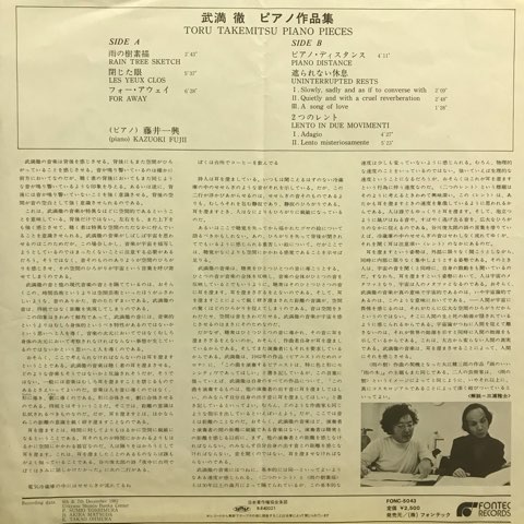 世界にも類を見ない唯一無二の現代音楽作曲家、武満徹のピアノ作品集。武満徹が1950年に20歳の時に書いたデビュー作「2つのレント」から82年の「雨の樹素描 」までの代表的な作品を藤井一興による演奏で収録した一枚。アンビエント・ミュージックの先駆けのような音の余韻を聴かす間の取り方や、叙情性は排除しつつも不協和に行き過ぎない詫びさびすら感じさせる絶妙なバランス感覚の音の選び方など、ピアノ・ソロというシンプルな演奏形態だからこそ伝わる武満の魅力に溢れた名作。