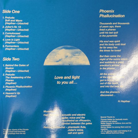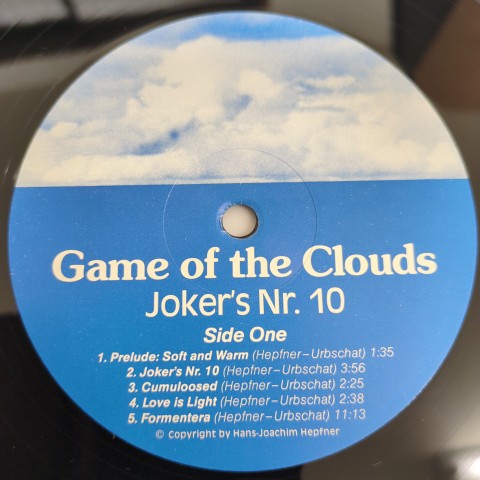 ドイツのギタリストHajo Hepfnerとフルート奏者Reinhard UrbschatによるユニットGame Of The Cloudsが92年に500枚限定で制作したという自主盤。宅禄好きにドンズバのプライヴェートな空気に満ちた「Heaven's Up」、アッチの世界で鳴っていそうなフルートがヤバすぎの「Prelude: Soft And Warm」などなどオブスキュア好きにはたまらない内容になっています。ジャケットも最高!
