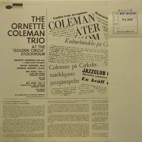 Ornette ColemanがBlue Noteに残した、ストックホルムのジャズクラブGolden Circleでのライブを収めた66年作。ベーシストDavid IzenzonとドラマーCharles Moffettとのピアノレスのトリオ編成。コードの制約を受けずのびのびと調子っぱずれに我が道を行くOrnette Colemanのアドリブが本当に素晴らしい!Ornette最高傑作の一つ。私的オールタイム・フェイバリット。