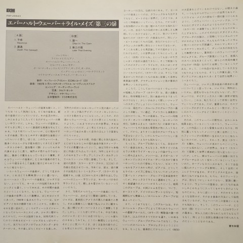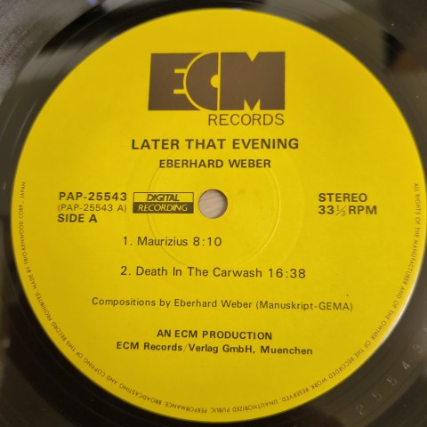 ドイツの特異なジャズ・ベーシストEberhard WeberがECMからリリースした82年作。メンバーはギタリストBill Frisell、Oregonのリード奏者Paul McCandless、Pat Metheny Groupでお馴染み鍵盤奏者Lyle Mays、打楽器奏者Michael DiPasqua。Eberhard WeberのアブストラクトなベースとBill Frisellのモアレ状のギターを軸にLyle MaysのリリカルなピアノやPaul McCandlessのエスノ・テイストなリードが溶け合う極上のECMサウンド。