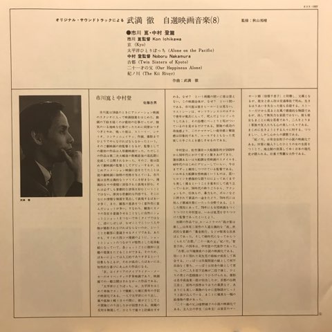 前衛だけにとどまらずポップスなどにも素晴らしい名曲を残している日本が誇る音楽家、武満徹が手掛けた映画音楽を10枚にまとめたシリーズ「オリジナル・サウンドトラックによる武満徹自選映画音楽」の第8弾。今作は市川崑・中村登の映画音楽を収録。間を活かした音響作品「京」、伸びやかで明るいメロディから始まる「太平洋ひとりぼっち」、プリペアド・ピアノの音色がカッコ良すぎの「古都」、ギターも使った「二十一才の父 」など、武満の様々な側面が感じられる一枚になっています。