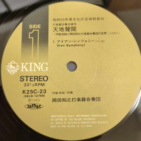 アニメのサントラなども手掛ける現代音楽作曲家で現日本現代音楽協会会長の坪能克裕と、数々の打楽器音響作品で知られる岡田知之打楽器合奏団による80年作。紙、水、樹、鉄などを駆使し聴いたことの無い音を次から次へと繰り出してくる異形の鬼ヤバ音響作品。内ブックレットに載っている録音時の写真がめちゃくちゃ楽しそうです笑。