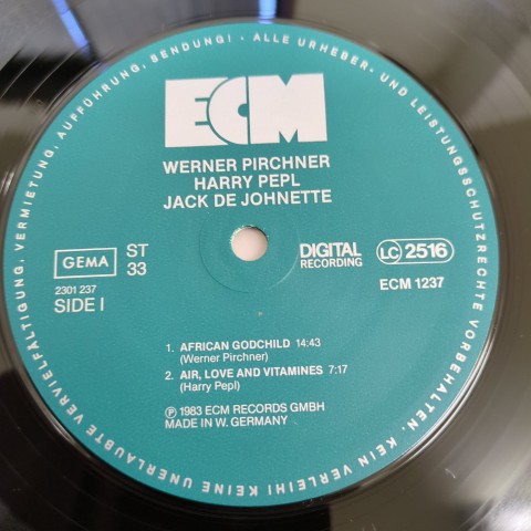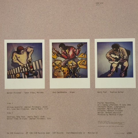 オーストリア出身のヴィブラフォン/マリンバ奏者Werner PirchnerとギタリストHarry Peplの二人にドラマーJack DeJohnetteが加わった変則編成のトリオによるECMからの83年作。Werner Pirchnerの澄んだヴィブラフォンや柔らかなマリンバ、空間系エフェクトがかかったHarry Peplのギターが先鋭的で浮遊感のある音場を演出する非常にECMらしい作品です。
