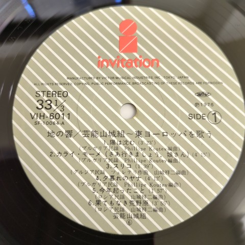 1988年のアニメ映画「AKIRA」の音楽を担当したことでも知られる山城祥二率いるコーラス・グループ、芸能山城組が中村とうようによるプロデュースでブルガリア、グルジア、ロシアといった東欧の民謡を取り上げた76年セカンド・アルバム。そのなかでもブルガリア地方の女声合唱による伝統的な民族音楽、いわゆるブルガリアン・ヴォイスのカバーが素晴らしく、ブルガリアン・ヴォイスの創始者Filip Kutevがアレンジした不協和音も重なり合う幻想的な唯一無二のハーモニーを無伴奏の力強い合唱で聴かせてくれる、芸能山城組のコーラス・ワークが十二分に発揮された名作。