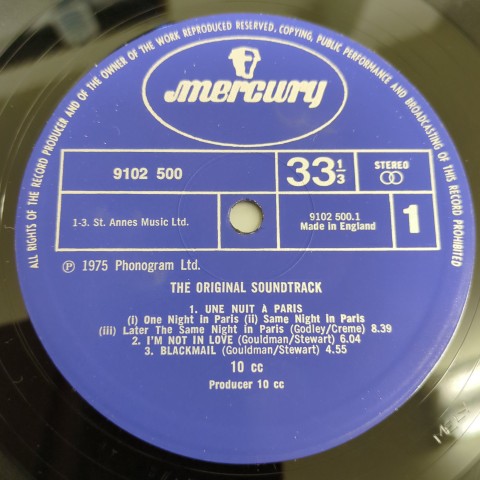 UKオリジナル。マトリックスNo A-side 1Y // 2 B-side 2Y // 1。