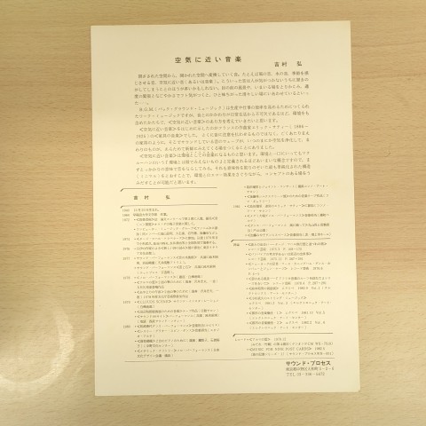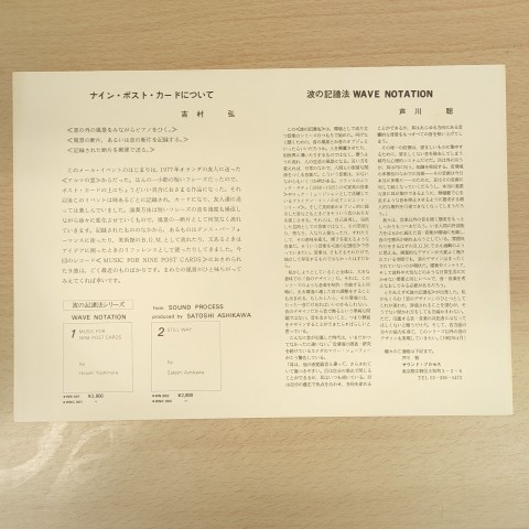 現在世界で再評価されている数々の日本人アーティストの中でも最重要人物の一人といえる、2003年に惜しくも亡くなった吉村弘が芦川聡のレーベル〈サウンド・プロセス〉からリリースした記念すべき82年1stアルバム。吉村弘独特の温かみのある音色のフェンダー・ローズとキーボードが日本的美意識を感じさせる絶妙な間合いでまろやかに空間を漂う、日本産アンビエント/ニューエイジ最高峰の作品です。盤かなりキレイです。