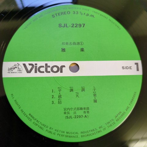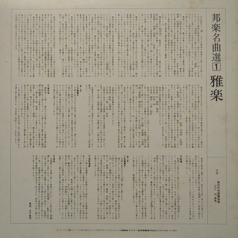 LP 宮内庁式部職楽部 / 邦楽名曲選1 雅楽 Gagaku