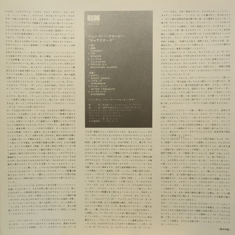 ECMを代表するギタリストJohn Abercrombieがアコースティック・ギター、エレクトリック・ギター、エレクトリック・マンドリンを多重録音して創り上げたキャリアで唯一のギター・ソロ・アルバム。万華鏡のようなキラキラとしたナンバーからアンビエント・サウンドまで、Jan Erik Kongshaugの優れた録音もあり音の余韻まで美しいアルバム。