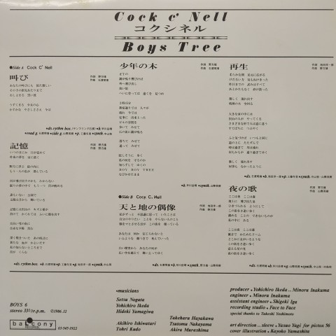 元めんたんぴんの池田洋一郎とヴォーカリスト野方攝が中心となった金沢のバンド、コクシネルが自主でリリースした86年作。Maher Shalal Hash Bazの工藤冬里や石渡明廣、早川岳晴などが参加。野方攝のヴォーカルが強烈な存在感を示す「夜の歌」収録のジャパニーズ・アンダーグラウンド名盤。工藤冬里の特異なタイム感のピアノも最高です!