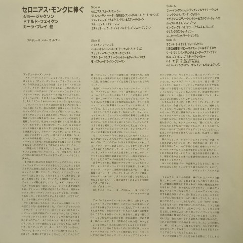「三文オペラ」で有名なドイツの作曲家Kurt Weill、イタリアの偉大なる作曲家Nino Rota、そしてディズニー映画音楽などの個性的なトリビュート・アルバムの企画で知られる音楽プロデューサーHal Willnerによる奇才ジャズ・ピアニストThelonious Monkへの追悼盤。 Dr. John、NRBQ、Todd Rundgrenなんかに混じってJohn Zorn&Arto Lindsay、Eugene ChadbourneのShockabillyとアヴァンギャルド勢も参加してるところがさすがのチョイス!ラストの Steve Lacyとのデュオで聴けるGil Evansのエレピも最高です。