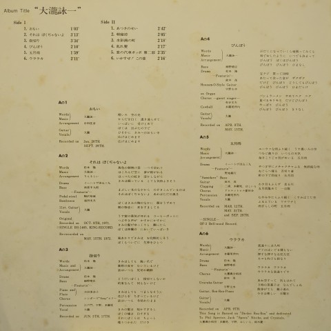 大瀧詠一の記念すべき72年ソロ・ファースト・アルバム。Beach Boys、フォーク、ソウル、ファンク、Elvis Presleyなど大瀧詠一の幅広く深い音楽趣味が反映された傑作。エンジニアの吉野金治にこのテイクじゃないと録音を辞めると言わしめた、仮歌のつもりで歌ったという大名曲「指切り」の掠れた歌声が最高にカッコいい!