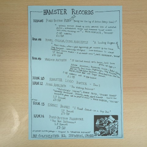 Push-Button PleasureのTerry Burrowsがオーナーであり妄想民族音楽〜宅録ミニマル・ユニットRimarimbaやR. Stevie Mooreの作品を残すUKのレーべル〈Hamster Records And Tapes〉からリリースされた、Melvyn Z Padによる変名Enski Boskiの84年作。宅禄感出まくりの音質やリバーブの効きまくったクセ強のヴァーカルに時折入るノイズもたまらない、個人の宇宙が詰まった好きモノにはドンズバの一枚です。