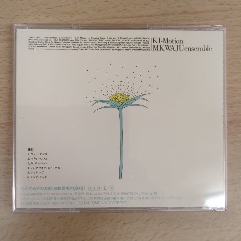 久石譲が設立した高田みどりも在籍のミニマル・アンサンブル・グループ、ムクワジュ・アンサンブルの81年1st『MKWAJU』リリース後に久石譲が脱退し、千野秀一プロデュースで制作された81年2ndアルバムの91年CD初盤。冒頭から一気に持って行かれる「Wood Dance」、千野秀一作曲による第四世界感もある「Maximum α」、そして同時代の世界のミニマル・ニューエイジ名曲たちとも共振する高田みどり作曲の「Hot Air」が何より素晴らしい!大傑作!