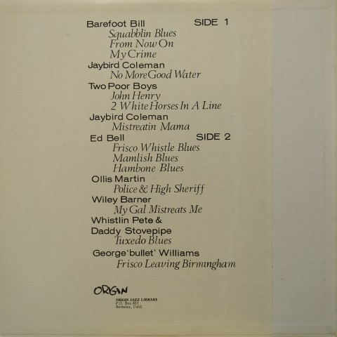 アメリカ南部アラバマ州に残された1927〜1931年録音のデルタ・ブルースを収録した戦前ジャズ/ブルース名門Origin Jazz Libraryからのコンピレーション。ファンク〜ヒップホップまで一直線に繋がるような黒人音楽特有のミニマリズムを感じさせるEd Bellの「Frisco Whistle Blues」、Whistlin' Peteによる鳥の鳴き声のような口笛が聴けるDaddy Stovepipe「Tuxedo Blues」、George "Bullet" Williamsの奇妙奇天烈なハーモニカ・ソロ「Frisco Leaving Birmingham」などなど、戦前ブルースならではのエキセントリックでユニークな全14曲。