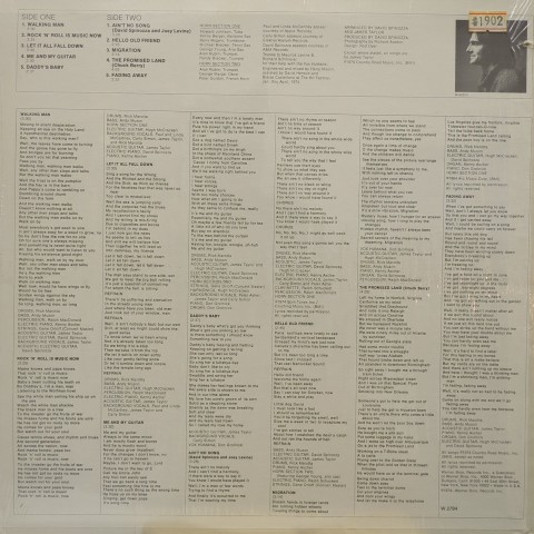 アメリカを代表するシンガーソングライターの一人James Taylorの74年5thアルバム。 David SpinozzaプロデュースによるNY録音。前作『One Man Dog』のフォーク・テイストからより洗練されたジャズ的なアレンジが心地よいプレAOR作品。