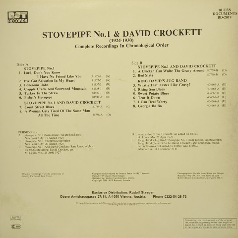 ギタリストでハーピスト、そしてストーブのブリキ製煙突を利用した楽器ストーヴパイプの使い手Stovepipe No. 1ことSamuel Jonesの1924-1930の音源を収録した一枚。空瓶を使用したジャグやおもちゃのようなカズーにも通じる、見た目もインパクト大なストーヴパイプのユニークでファニーな音色が面白い!なんでも楽器にしてしまうDIY感も最高です。