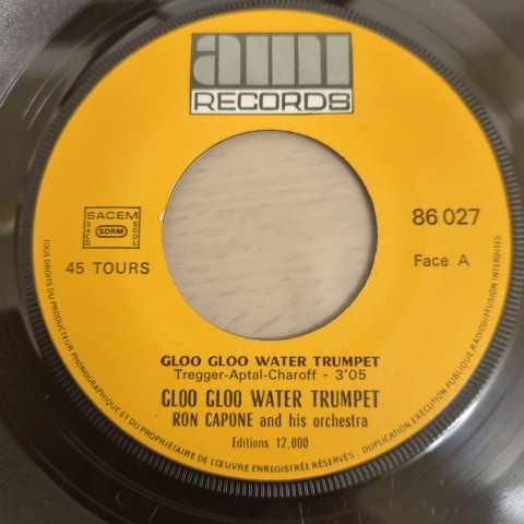ライブラリー・ミュージック、ディスコ、電子音楽など様々なジャンルで活動してきたフランスの作曲家/トランペット奏者Yan Treggerが関わったor変名?のRon Capone And His Orchestraによる7インチ・シングル・レコード。水のブクブク音から始まりイージーリスニングな演奏をバックに、まるで水中で演奏しているようなエフェクトがかけられたトランペットが展開されるモンド盤。ややおセンチな音楽とちょっとマヌケに聴こえるトランペットの対比が面白い!