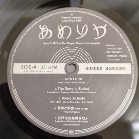 細野晴臣が2019年に行い大盛況となったUSツアーの模様を収録したライヴ・アルバム。細野さんがここ十何年ほどハマっていたアメリカの古いブギウギのカバーや自身の「薔薇と野獣」「Roochoo Gumbo」「Sports Men」やMac DeMarcoとの「Honey Moon」など抜群の選曲を絶妙なアレンジで聴かせてくれる名作ライブ盤。録音も良くデカい音で聴いても全くうるさくなく臨場感が凄い!これは爆音で!