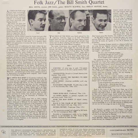 ジャズ・クラリネット奏者Bill SmithがJim Hallとともにイギリス民謡や黒人霊歌、労働歌などのトラッド・ソングを取り上げた61年作。後のBill Frisell、Brad Mehldau、Julian Lageらによるジャズ・アメリカーナの先駆けともいえる早すぎた作品。
