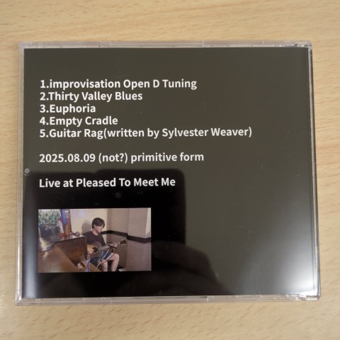 奈良のJohn FaheyことKatsunori Uenishiが25年8月9日に当店と同ビルの個性派喫茶店Pleased To Meet Meで行ったライブの模様を収録した一枚。戦前ブルース/カントリーやSP盤も愛好するKatsunori Uenishiならではのアメリカン・プリミティブ・ギターの魅力が詰まったアルバム。めっちゃ気持ち良い!